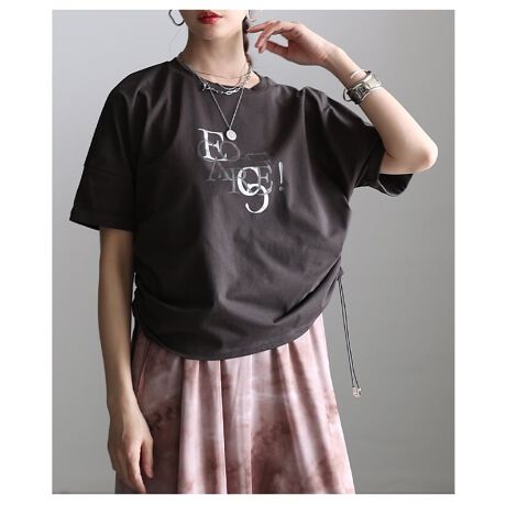 プリントロゴがアクセントになるTシャツ。サイドのドローコードでシルエット調整ができ、その日の気分やコーデに合わせた着こなしが楽しめます。ラフに着るだけでこなれた印象に仕上がる一枚です☆