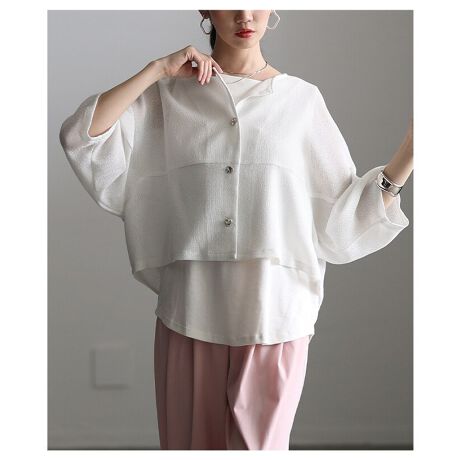 変形ボタンがさりげないアクセントになるカーディガン。さらっと軽く羽織れるので、春夏のコーデに重宝します。シンプルながらひと味違う、大人の着こなしにぴったりの一着です☆