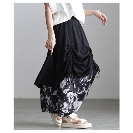 マルイウェブチャネル   /   サワアラモード   /   すべてのスカート   /   スカート   /   【スカート】 異素材 ドロスト プリント マーブル ロング ギャザー レイヤード ブラック 黒