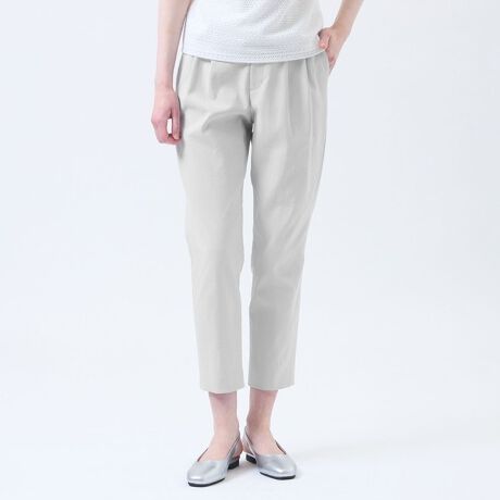ドライタッチなファブリックが人気のテーパードパンツ。ヒップから腿にかけてのゆとりを活かしつつ、ひざから裾にかけて緩やかに絞ったテーパードシルエットは、ふくらはぎ周りがまとわりにくいパターン設定。カラーバリエーションも豊富で、キレイめにもカジュアルスタイルにも、デイリーに着まわしやすいアイテムです。