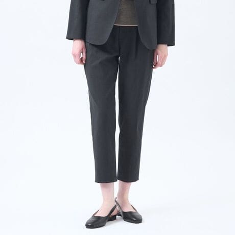 ドライタッチなファブリックが人気のテーパードパンツ。ヒップから腿にかけてのゆとりを活かしつつ、ひざから裾にかけて緩やかに絞ったテーパードシルエットは、ふくらはぎ周りがまとわりにくいパターン設定。カラーバリエーションも豊富で、キレイめにもカジュアルスタイルにも、デイリーに着まわしやすいアイテムです。