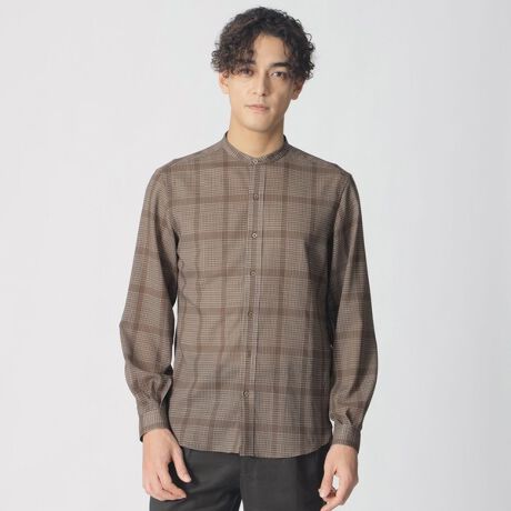 バンドカラー&プラケットフロント(別布または折り返した生地で帯状の前立てを作り、ボタンが表から見える仕様)