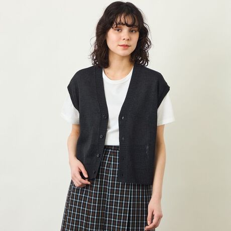 ノースリーブで着用したり、半袖や長袖の上にレイヤードするなど温度調節にも最適です。デニムやスラックス、Tシャツと合わせたカジュアルコーデはもちろん、ブラウスやワンピースを合わたコーディネートにもおすすめです。