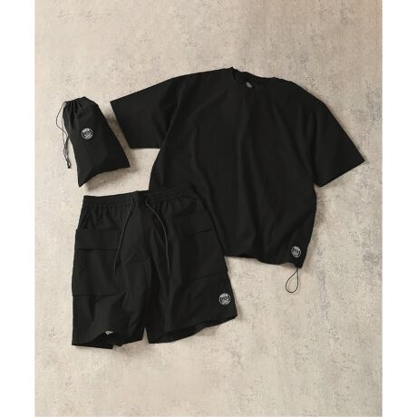 Tシャツ、ショーツ、そしてそれらをコンパクトに収納できるスタッフサック(巾着)。これひとつでコーディネートが完結し、あらゆるシーンへ軽やかに飛び出せる、真のユーティリティウェア。