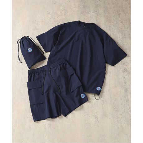 Tシャツ、ショーツ、そしてそれらをコンパクトに収納できるスタッフサック(巾着)。これひとつでコーディネートが完結し、あらゆるシーンへ軽やかに飛び出せる、真のユーティリティウェア。