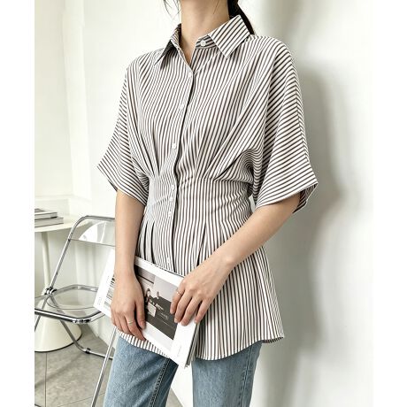 ストライプシャツブラウス ウエストマーク