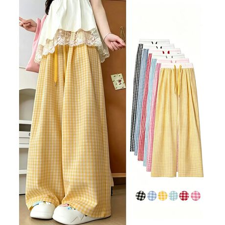 春夏に映える爽やかなギンガムチェック柄のイージーワイドパンツ。