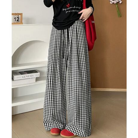 春夏に映える爽やかなギンガムチェック柄のイージーワイドパンツ。