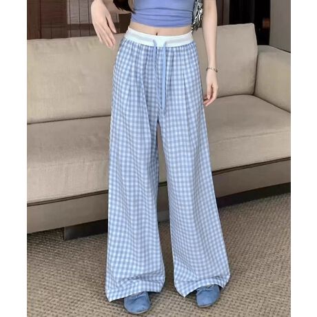 春夏に映える爽やかなギンガムチェック柄のイージーワイドパンツ。