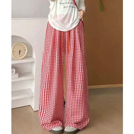 春夏に映える爽やかなギンガムチェック柄のイージーワイドパンツ。