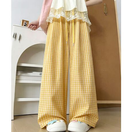 春夏に映える爽やかなギンガムチェック柄のイージーワイドパンツ。