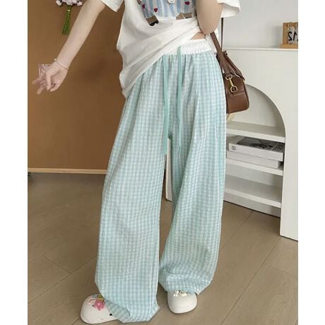 春夏に映える爽やかなギンガムチェック柄のイージーワイドパンツ。