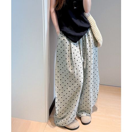 ドット柄ワイドパンツ韓国風春夏ラフパンツ
