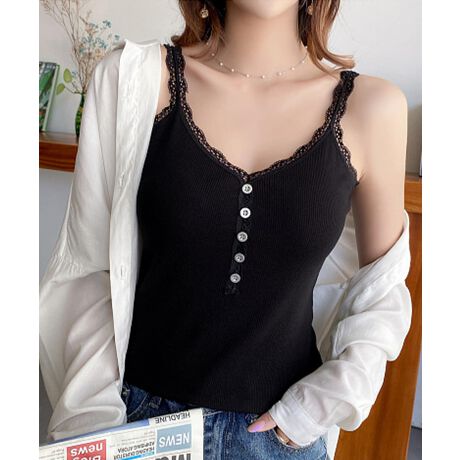 レースリブキャミソールフロントボタン夏服
