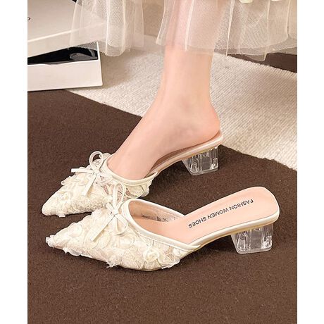 レースミュールサンダルリボン付きミュール