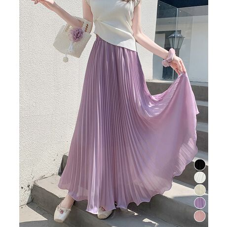 軽やかなシフォン素材が揺れる、プリーツデザインのロングスカート。
