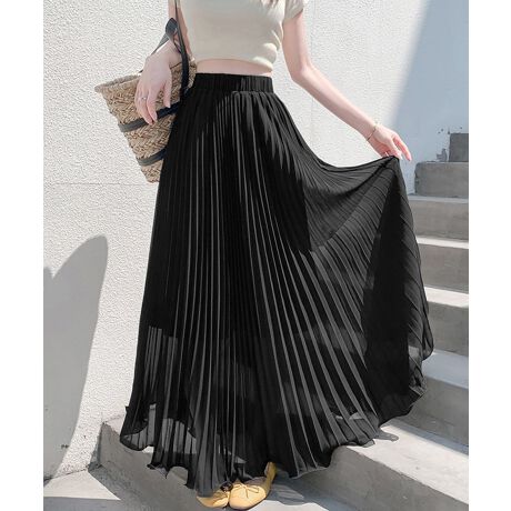 軽やかなシフォン素材が揺れる、プリーツデザインのロングスカート。