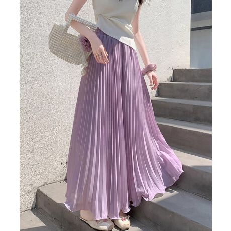 軽やかなシフォン素材が揺れる、プリーツデザインのロングスカート。