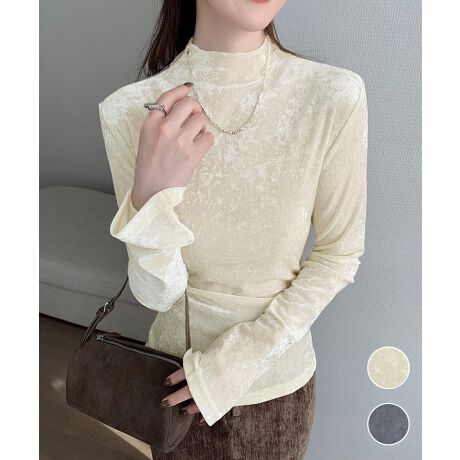 なめらかな質感と上品な光沢が魅力のベロアプチハイネックトップス。