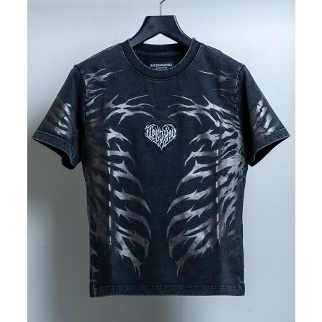 フロントにはハートモチーフの刺繍とボーンプリント配置。