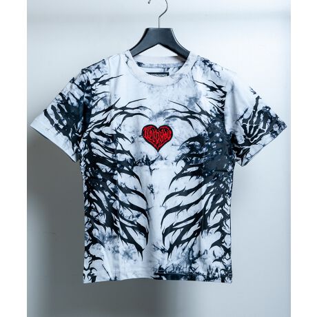 フロントにはハートモチーフの刺繍とボーンプリント配置。