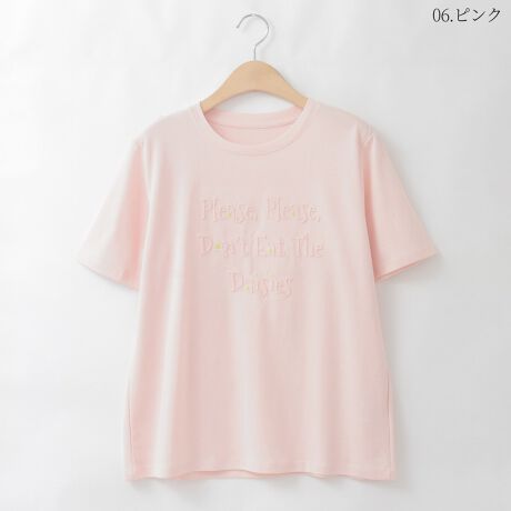 フロントのキュートな刺繍メッセージが目を惹くデザインTシャツ。