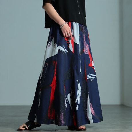 アーティスティックなプリント柄が一目を置く、華やかであり、モード感漂うスカート。一歩踏み出すたびに揺れるシルエットが軽やかな印象を放ち、シンプルなトップスと合わせるだけでスタイリングが完成する、都会的で秀逸な存在感漂う唯一無二な一枚。接ぎ合せのゴアスカートで、ウエスト周りはすっきりと、裾に向かって自然に広がるフレアシルエットが下半身を上品に体型カバー。ウエストが総ギャザーゴム仕様だから窮屈感なくストレスフリーな穿き心地。滑らかな裏地付きで透ける心配もなく、脚さばきも快適に。