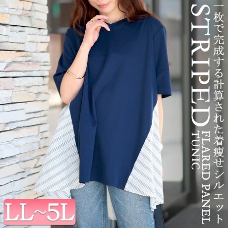 【大きいサイズ】 後ストライプフレア切り替えチュニック 大きいサイズ レディース チュニック