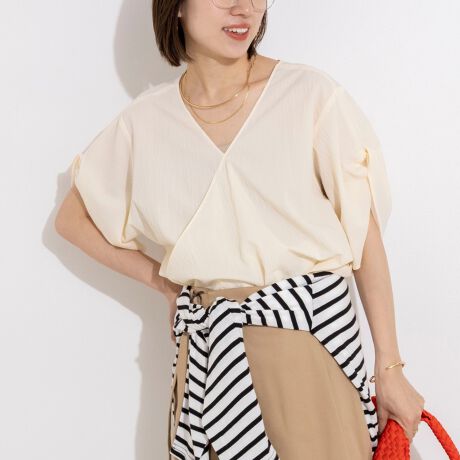 ・袖をまくったような「ツイストスリーブ」がポイントのブラウス