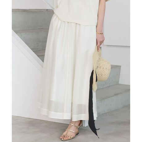 動くたびふわりと揺れる、エアリーでニュアンスたっぷりな雰囲気が魅力のフレアスカートです。腰回りはスッキリとさせつつ、裾に向かってふんわりと広がる美しいフレアシルエットに仕上げました。ウエストはゴムギャザー仕様で、イージーで快適な穿き心地を叶えます。また、ウエストベルト部分は、ひと折りしても裏地が覗かない工夫を施しており、少し短く穿きたい時には長さを調整できるのも嬉しいポイントです。やや長めのTシャツや、フォルム感のあるカットソーをラフに合わせた、トレンドライクな着こなしがおすすめ。ご家庭でお手入れが可能で、デイリーに気兼ねなく着回していただけるアイテムです。カラーは、クリーンな印象のオフホワイト(#001)、柔らかな雰囲気のモカ(#030)、ベーシックで合わせやすいブラック(#005)の3色展開です。