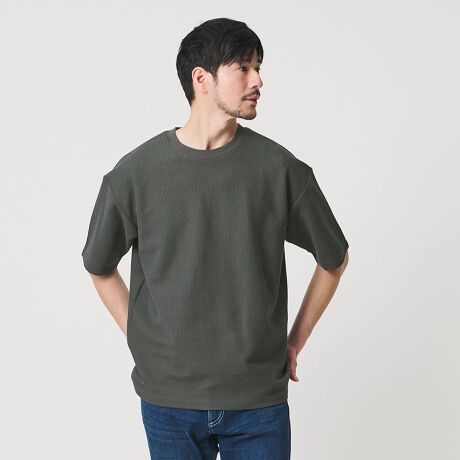 肌触りが良く夏場にもさらっと着れるカノコ調素材。