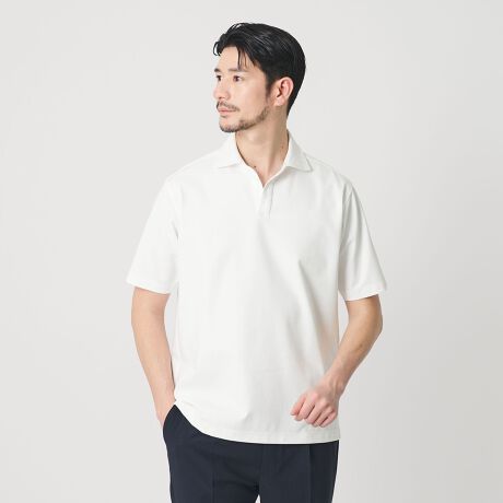すっきりきれいに見えるようにパターンからこだわったレギュラーシルエットのスキッパー型のポロシャツ。