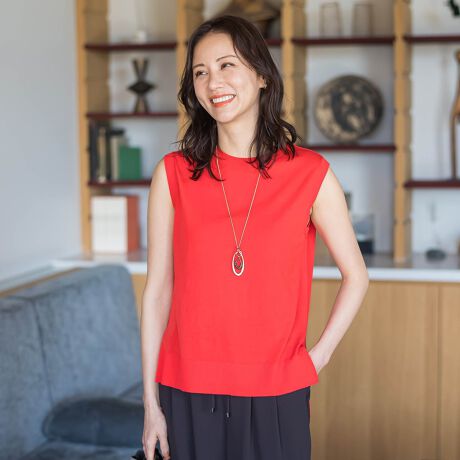 多ボタンのカーディガンと同素材で展開するノースリーブニット。