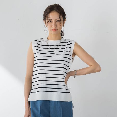 多ボタンのカーディガンと同素材で展開するノースリーブニット。