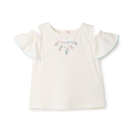 ネックレス刺しゅう 肩開き2way 半袖Tシャツ