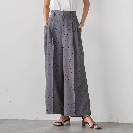 リネンライクな素材にドットプリントをあしらったきれいめストレートパンツ。