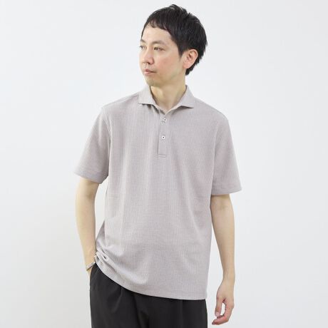 リンクスストライプ半袖ホリゾンカラーポロシャツ