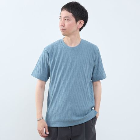 ハリ感と適度な厚みを持たせた生地に、凹凸のあるバイアス柄を施したさりげなくキャッチーで上質な素材感が特徴です。