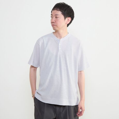 新型のヘンリーネックをベースにスキッパーデザインを取り入れた、品のある佇まいのTシャツ。