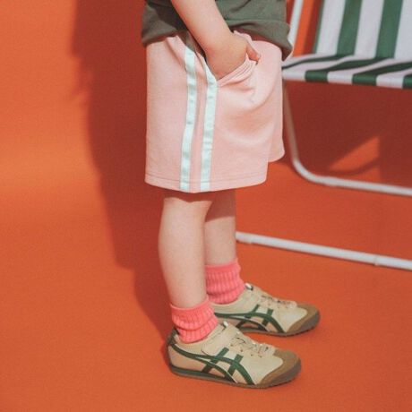 やわらかくしっかりとしたポンチ素材で、元気に動くお子さまにも快適な履き心地。