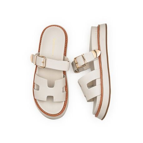 旬のボリューム感が魅力の厚底サンダル。履くだけでスタイルアップが叶う、存在感のある一足です。
