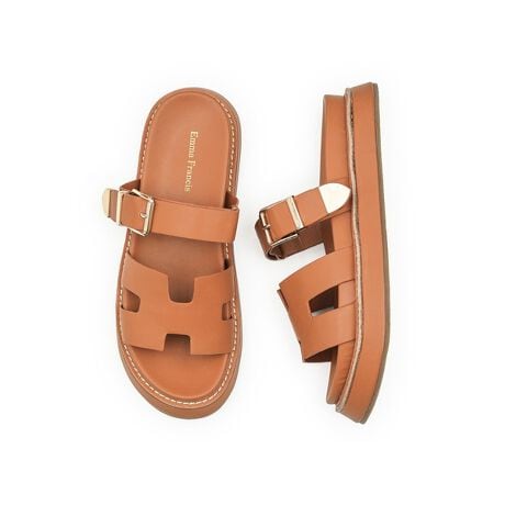 旬のボリューム感が魅力の厚底サンダル。履くだけでスタイルアップが叶う、存在感のある一足です。