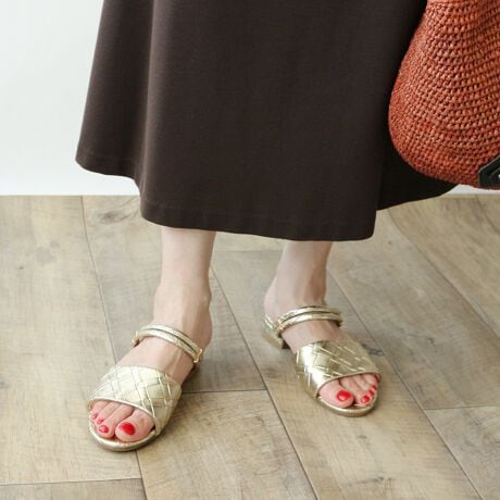 中敷きの下には低反発クッションをセットしているので、足裏にも優しいのが嬉しい。ミュールのようにも履けますが、2本のベルトの間に足を通して、1本をかかとに引っ掛けて履くことも可能な2wayタイプなので、ホールド感も◎。引き続き人気のデニムやワイドパンツにはもちろんですが、ロングスカートやショートパンツなど、リゾートテイストのアイテムと合わせてゆるめに履きこなすのもおすすめです。