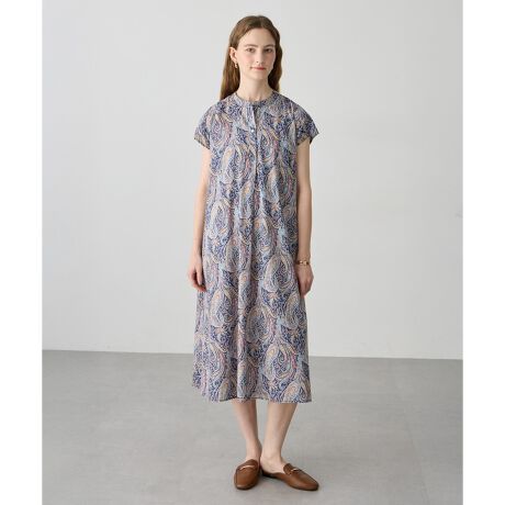 [型番:293257]上品に着こなすペイズリーワンピース昨年大好評のカフタンシルエットのバンドカラーワンピースが、新柄で今季も登場。リラックス感がありながらも上品に着こなせる一枚です。今季は袖丈を少し長めにアレンジし、よりバランスよく着られるデザインに。パンツを重ねたレイヤードや、軽い羽織りを合わせたスタイリングもおすすめです。