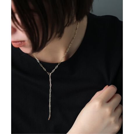 中空ペーパークリップチェーンを使用したK18ネックレス。