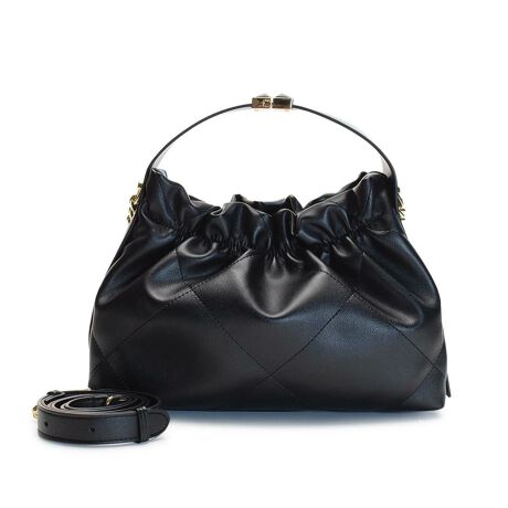 しなやかな牛革で仕立てた、独創的なギャザーと曲線デザインが目を惹くハンドバッグ。