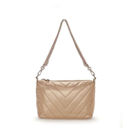 キルティング生地のスクエア型ポシェット。カジュアルで使いやすい形ながら、上品な印象を与えてくれるポシェットです。装いに合わせて付属のショルダーベルトとチェーンハンドルを付け替えていただけるので、様々なシーンでお使いいただけます。
