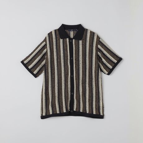 存在感あるストライプをあしらったジャージー素材のショートスリーブシャツ。