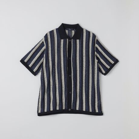 存在感あるストライプをあしらったジャージー素材のショートスリーブシャツ。