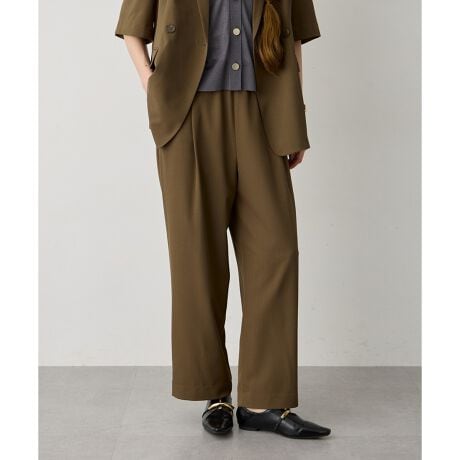 リネンライクタックワイドパンツ 【ウエストゴム・セットアップ対応】
